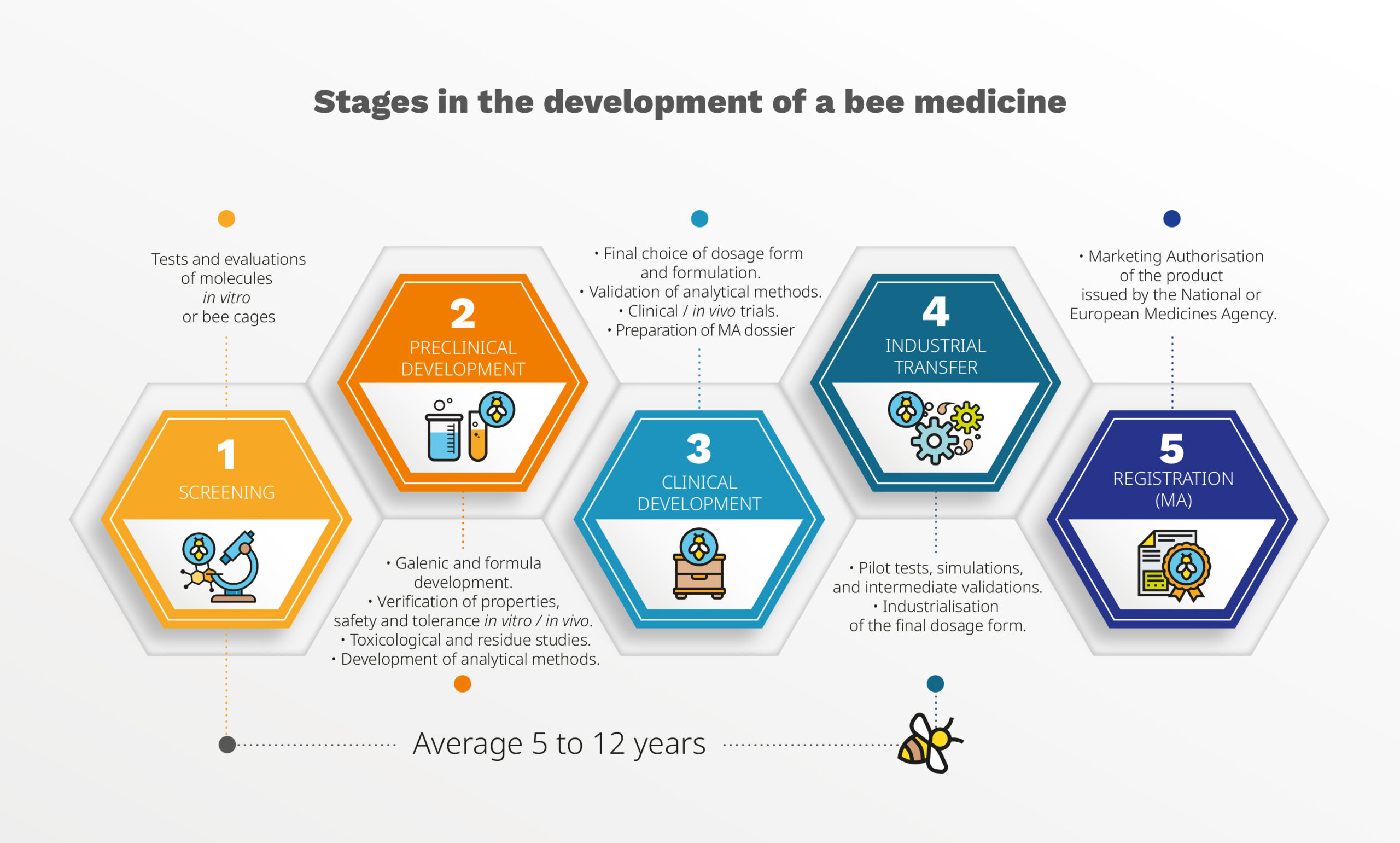 Developing a vet medicine for bees is a long, rigorous, and strictly regulated process. Behind every registered medicine available to beekeepers lies a scientific, technical, and human journey that often remains unknown.