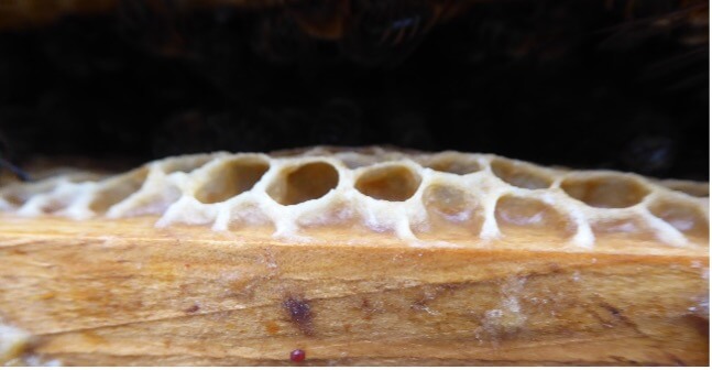 En esta revisión de la cría deberemos estar también atentos a los síntomas de enfermedades que hayan podido generar esa falta de supervivencia de la Foto 4: varroa, pollo escayolado, mala nutrición, loques, residuos en la cera…
