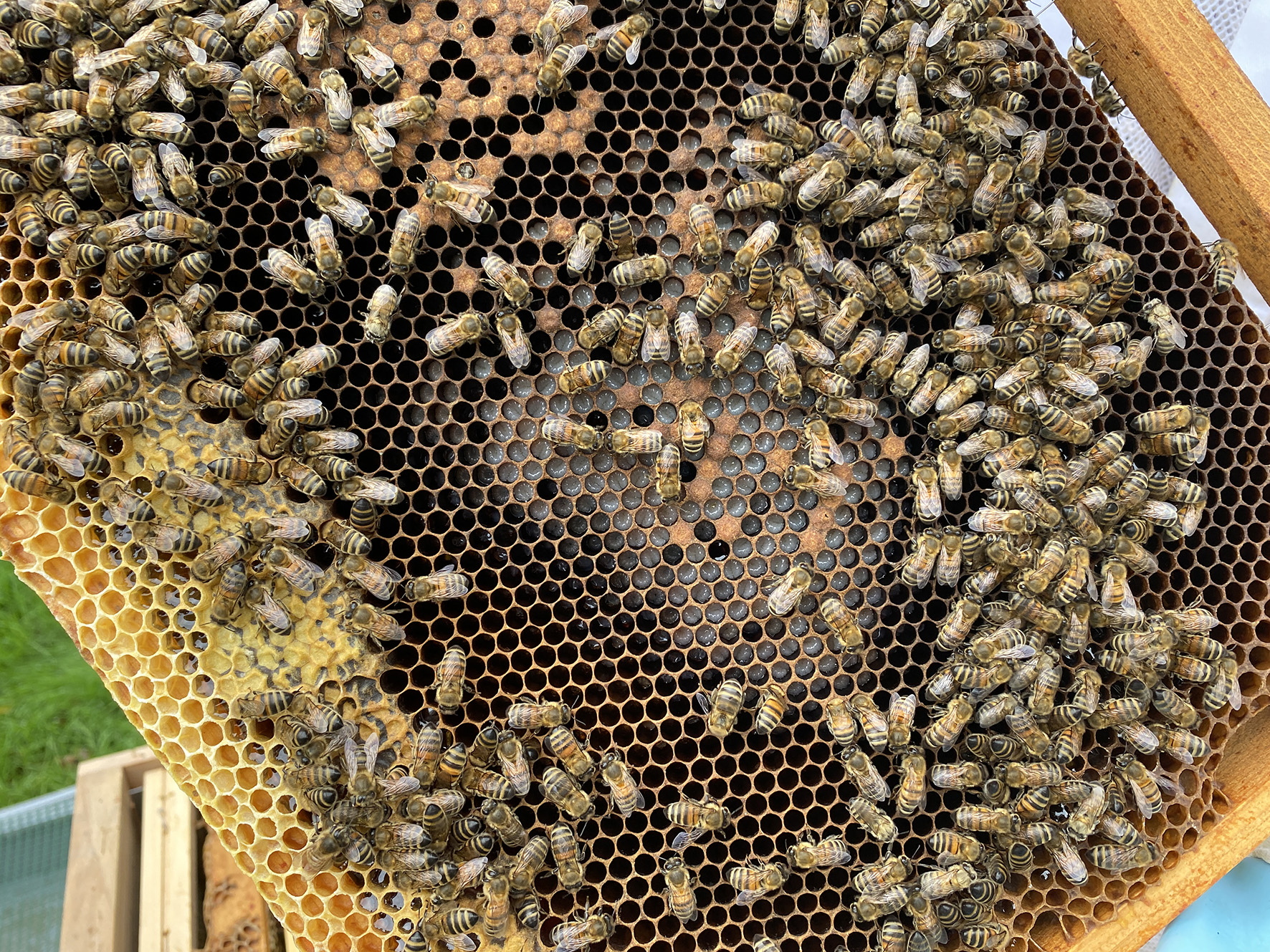 Pour limiter les biais dans les études, le facteur le plus important à respecter est l’homogénéisation des groupes d’étude. La majorité de nos études sont ainsi réalisées sur des colonies avec au minimum 4 cadres de couvain, rarement plus de 6. La quantité de réserve (miel et pollen) est également importante (en moyenne entre 3 et 4 cadres). Ces colonies sont ensuite réparties dans les différents groupes.