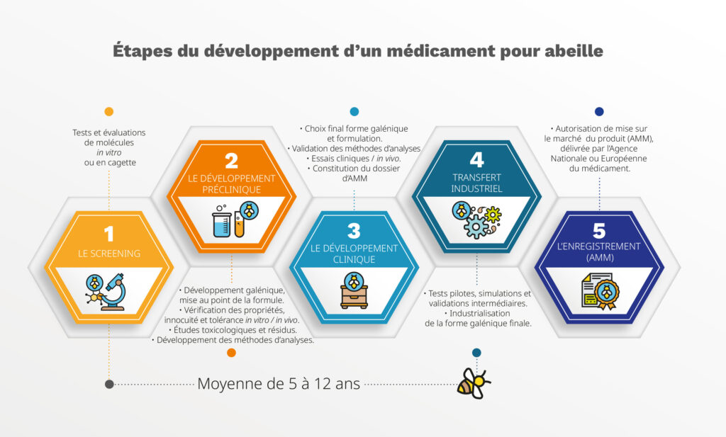 Développer un médicament pour abeilles est un processus long, rigoureux et strictement régulé. Derrière chaque solution mise à disposition des apiculteurs se cache un parcours scientifique, technique et humain souvent méconnu.
