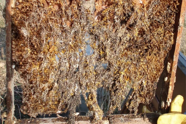 Les cadres cirés sont un élément capital à préserver dans toutes les exploitations apicoles. Les teignes (Galleria et Achroia) peuvent se développer sur ces rayons et les détruire en quelques jours, surtout en cas de températures élevées. Cela se produit uniquement si le cadre contient du pollen ou du couvain, car les restes de cocons dans la cire sont riches en protéines. Les teignes ne se nourrissent pas principalement de la cire, mais de ce que contiennent les alvéoles.